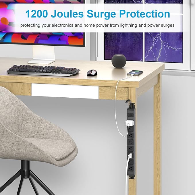 - Industrial Surge Protector: Multiple protection system with built-in 1200J surge protector MOV module to protect your electronics and home power from lightning strikes and power surges. Connects with 15ft 14AWG power cord.