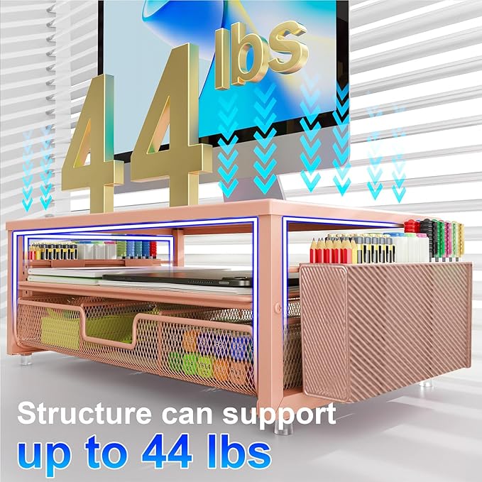 gianotter Desk Organizers and Accessories, Monitor Stand with Drawer and 2 Pen Holder, Desktop Organizer Suitable for Offices and Dormitories (Rose Gold)