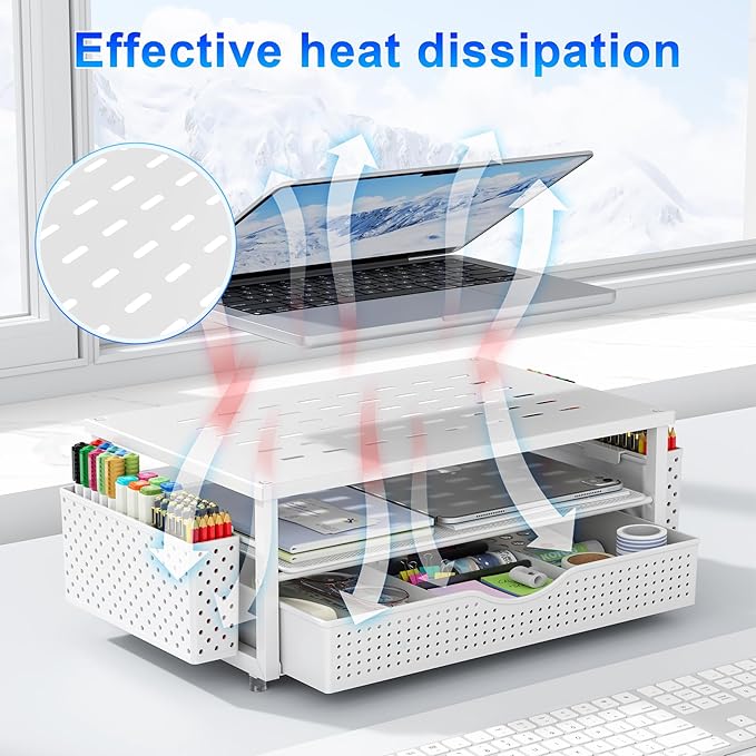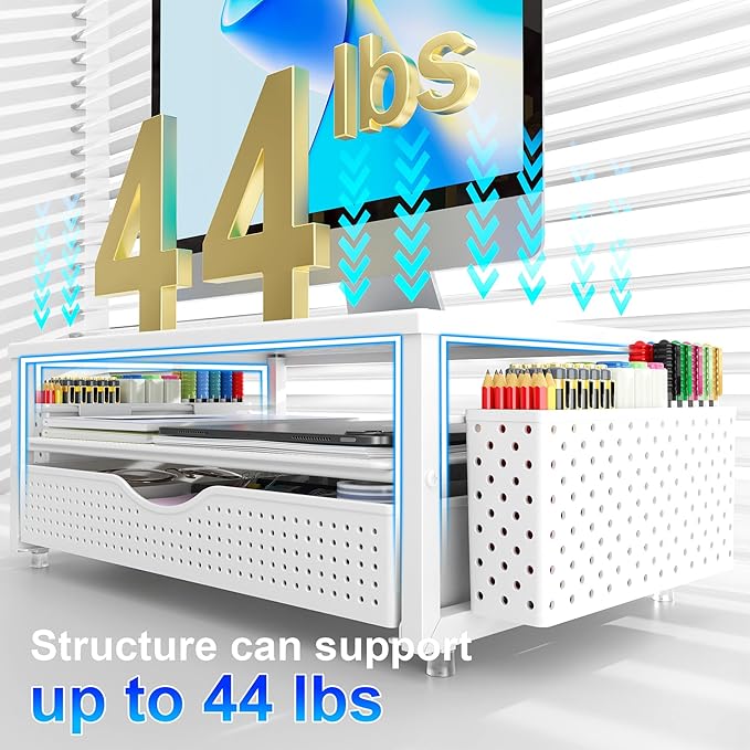 - 【Improved Work Efficiency】: The monitor riser comes with a sliding drawer and two pen holders. It accommodates various office desk items, saving space. It helps you quickly identify the contents of each compartment, doubling your work speed.