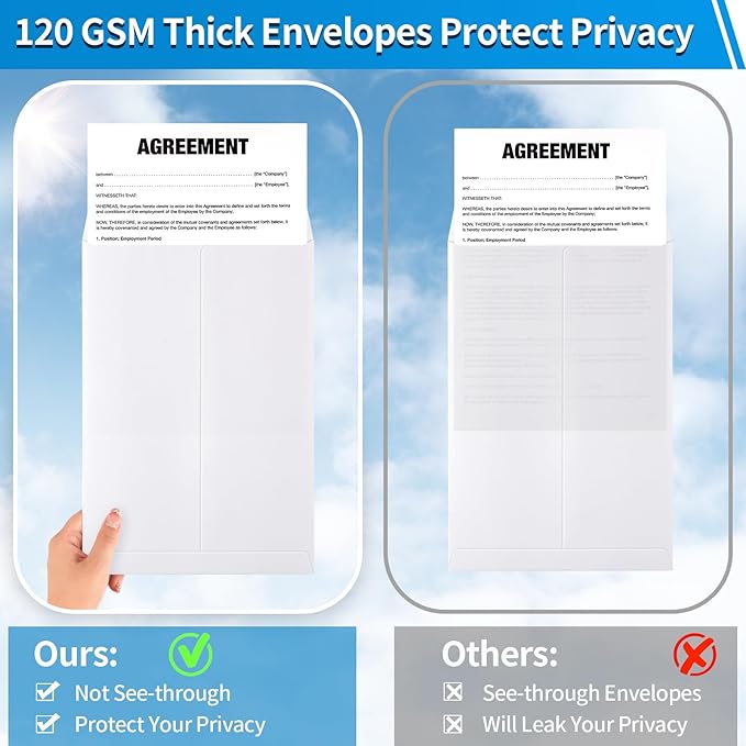 - 【Thick and Sturdy】The white manila envelopes are made of 100GSM double adhesive paper, which has excellent rip, tear and puncture resistance, catalog envelopes strong, thick and opaque. Perfect for obscuring sensitive information and protecting critical documents. Ideal for for secure business mailing.