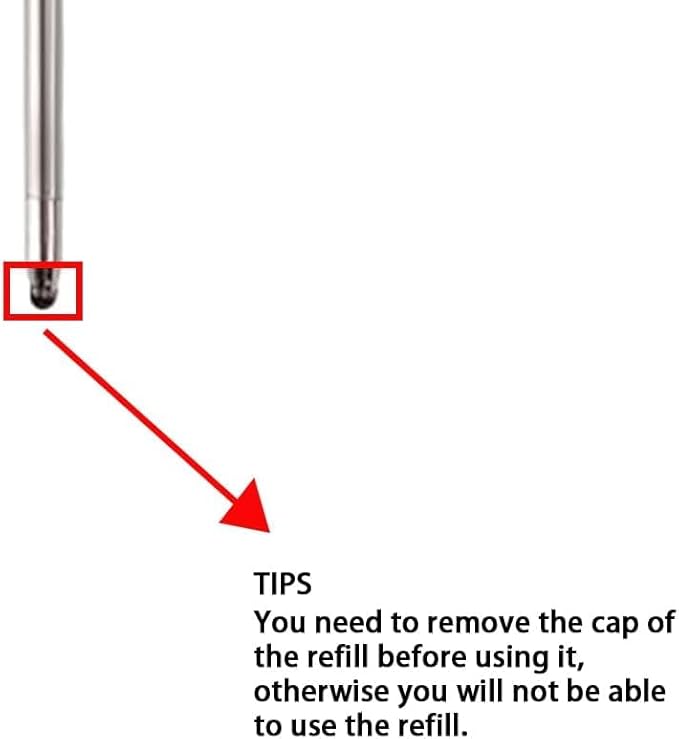 • Size:Ballpoint pen refill 2.75 inch (7cm);Cap size 0.39inch (10mm) ;Refill hole diameter size 0.089inch (2.26mm);Cap removal size: 2.64 inch (6.7cm),Before purchasing, double-check that the specifications are suitable for your pen.