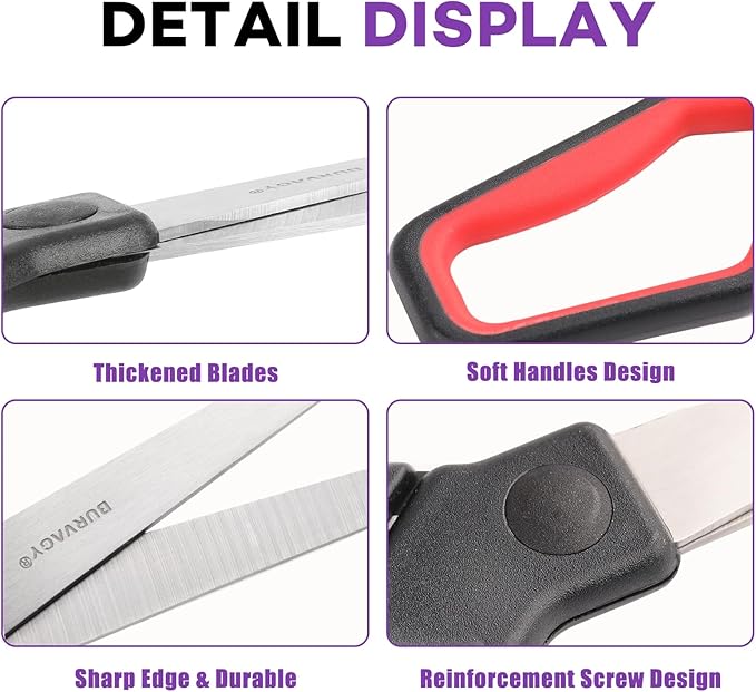 - ✂ 【SCISSORS ALL PURPOSE HEAVY DUTY】 Great for cutting burlap, cutting paper, photos, cardboard, light line, leather, fabric and other materials, Perfect for sewing, tailoring, quilting, dressmaking, cutting patterns, alterations, hand craft, comfortable to use in office, craft room, in the study, school, kitchen, household or other occasions.
