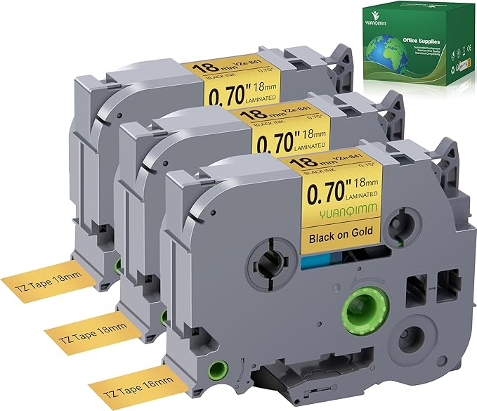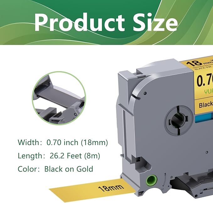 • Product Size: Width: 18mm 0.7 inch, Length: 26.2 feet (8m) for each 18mm 0.7 inch laminated gold label tape