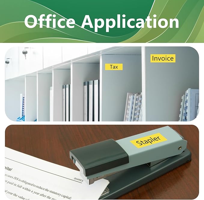 • Applications: TZe621 is suitable for home school office warehouse etc. It can be used to label files folders plug sockets books spice jars and more
