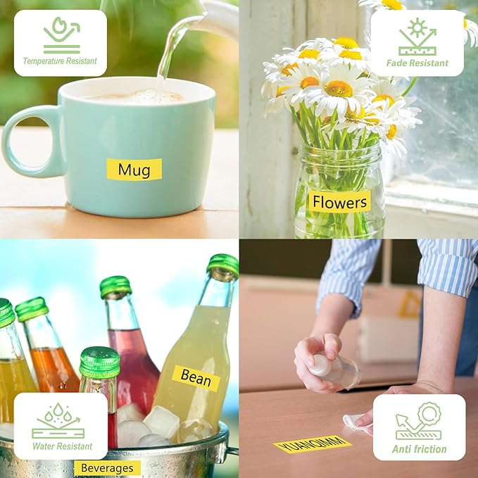 • Product Size: Width: 9mm 0.35 inch, Length: 26.2 feet (8m) for each 9mm 0.35 inch laminated yellow label tape