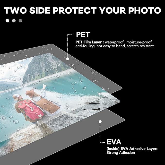 - Application:Perfect for protecting certificates,signs,photos,awards,calendars,kids artworks. It can seal and protect your documents it can be used in classroom, home and office. Compatible with all thermal laminator machine brands. Thermal laminator needed, not self-adhesive