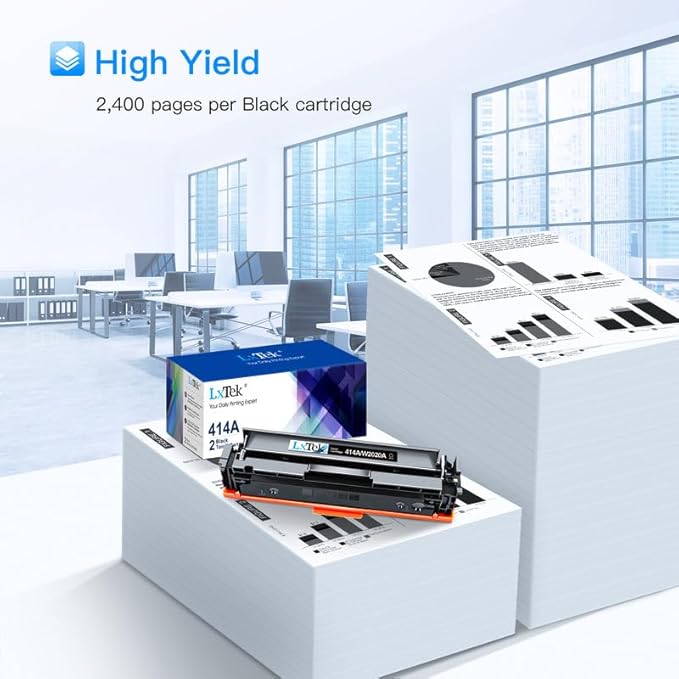 - 【414A Black With Chip】: LxTek Compatible with HP 414A black toner cartridge are already installed with chips, no need to transfer original 414A black or 414X black toner cartridges chip to them.