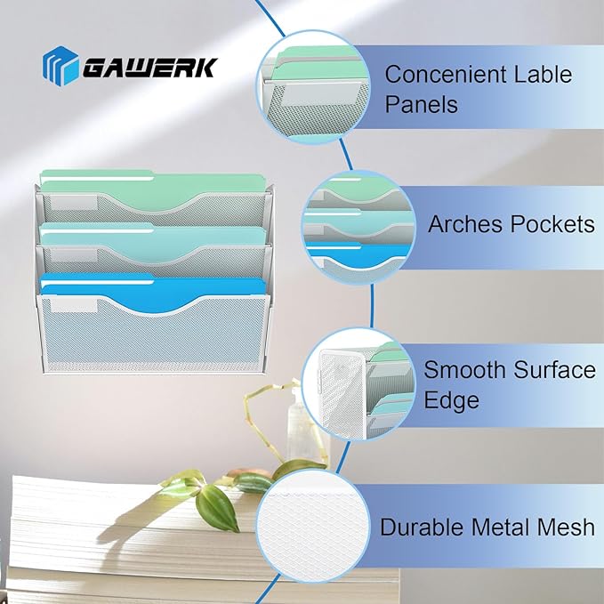 • ✏️ Easy Access to Files: The wall mounted file organizer features an arched design for easy access to the contents of your stored files.