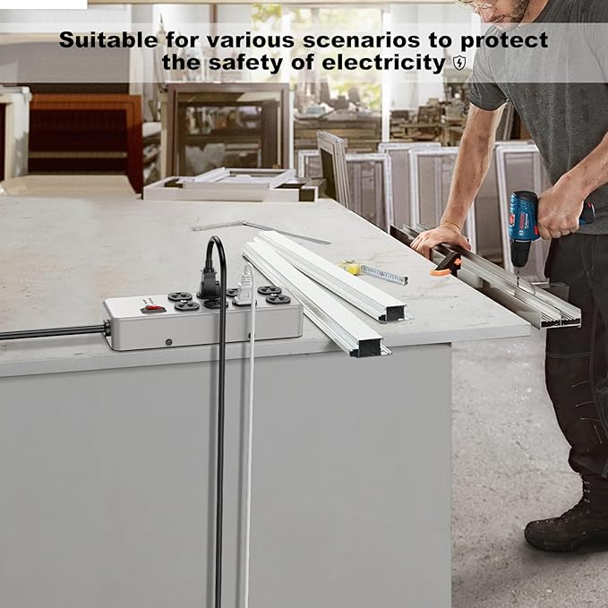 - Versatile Installation: Designed for convenience, this power strip features a wall-mountable design with two metal mounting holes. Its sturdy metal casing ensures durability, making it suitable for use in various settings such as garages, workshops, offices, or workbenches. It accommodates both vertical and horizontal setups, offering installation flexibility.