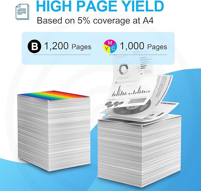 • Page Yield: Up to 1,200 pages black toner cartridge & 1,000 pages per color toner cartridge (at 5% coverage/A4 letter)