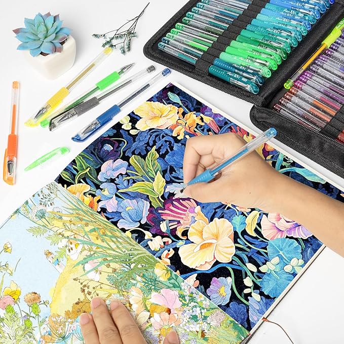 • Aen Art glitter gel pens come with 30% more ink, features 0.8mm-1mm ballpoint tip and soft grips. Which make our coloring pens last longer than others, perfect for adults coloring books, art project and journaling.
