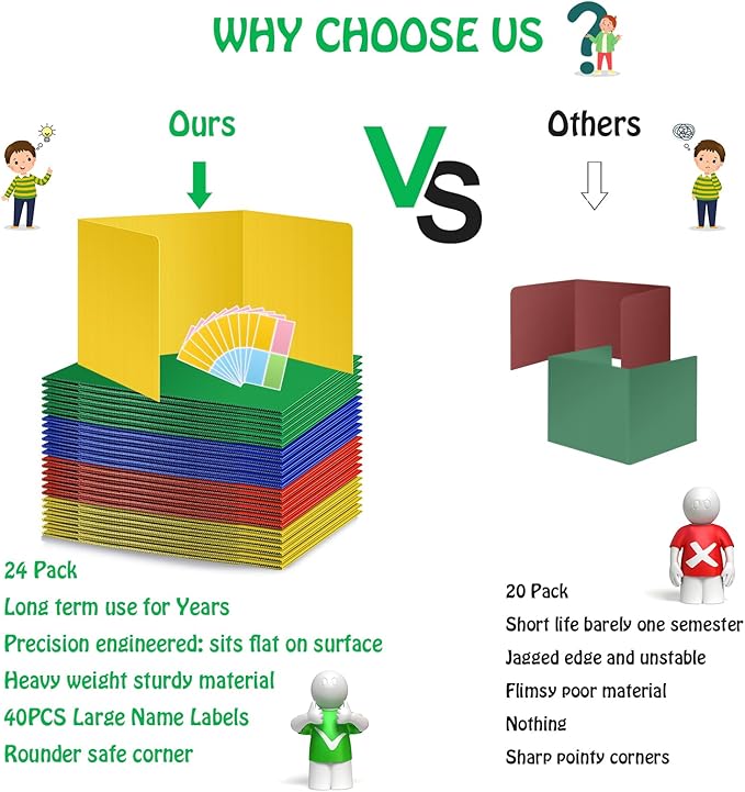 • Elementary teachers & classroom must haves. This set of folding panel board dividers sits easily on surfaces, reduces distraction & encourages independent learning. Classroom essentials perfect for flexible seating.