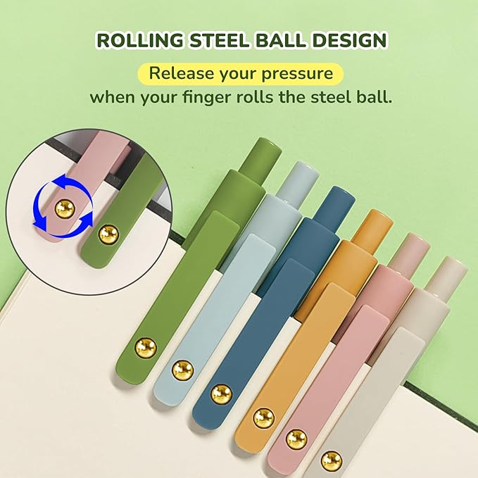 • Package Included: These journal pens included 12 pcs of high-end gold morandi and vintage gel pens. They are great retractable pens for aesthetic school supplies, office supplies, journaling, note taking and planning