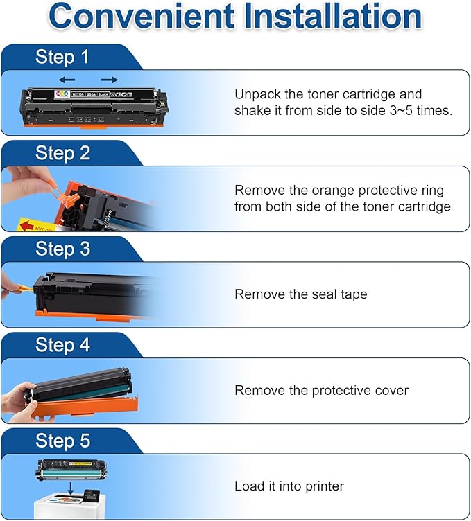 • Latest Chip: the 4 pack 206A toner cartridges adopt latest upgraded chip which is built inside which can insure instant recognition by printers and perfect compatibility