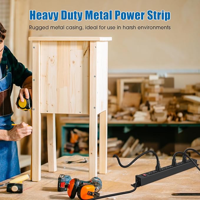 - 12 Outlet Mountable Power Strip: 12 outlets for more of your needs, with a 15-foot 14AWG power cord and 15A high current, max power: 60Hz/125V/15Amp/1875W. Package includes 4 mounting screws.