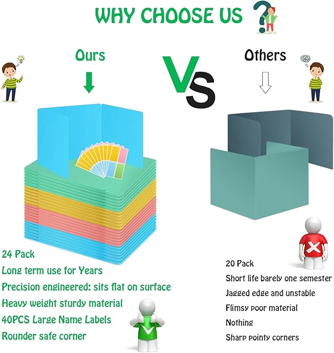 • Charming & Mighty - Unlike flimsy, cheaper plain plastic and cardboard desk dividers for students, our testing dividers for classroom create an uplifting space. Durable, eco-friendly pure plastic.