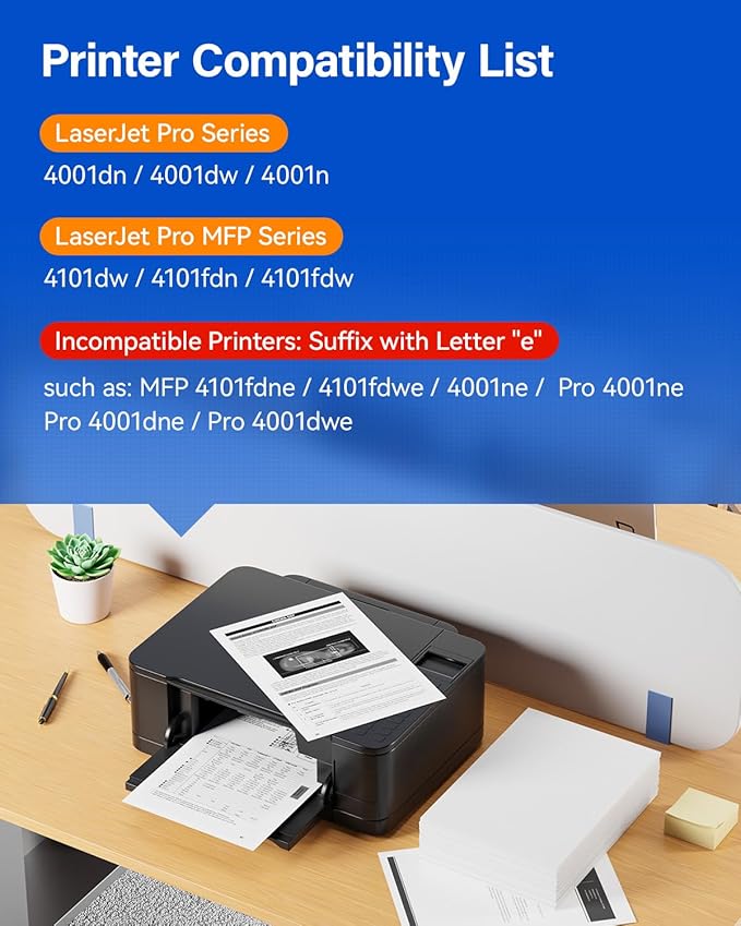 - Compatible Devices : Compatible with HP LaserJet Pro 4001dn,4001dw,4001n; MFP 4101dw,4101fdn,4101fdw Printer