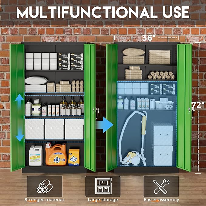 Greenvelly Metal Storage Cabinet,72" Steel Storage Cabinets with Doors and Adjustable Shelves, Metal Tool Cabinets, Locking File Cabinet for Home Office, Garage, School (Black Green36 Wx18 D)