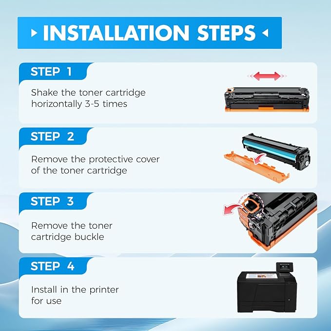 - Total Packges: 4-Pack of 131A Toner Cartridges, Black for CF210A,Cyan for CF211A,Yellow for CF212A,Magenta for CF213A.