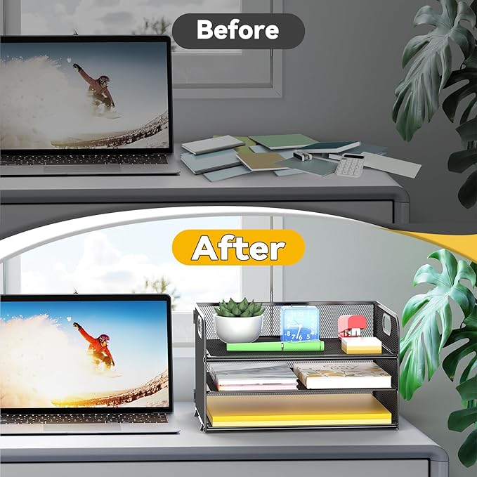 • 【SPACE-SAVING】Using a vertical structure, This Letter Tray takes up as little space as possible on your desktop, giving you a better office environment