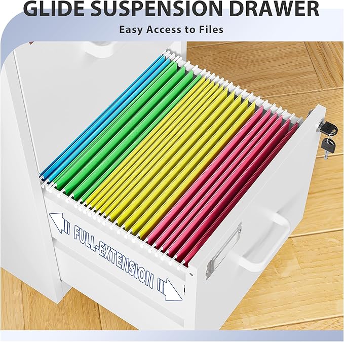 - 【Large-Storage Space】The vertical file cabinet is deeper than similar file cabinets, with fully extended silent slide rails, easy to open and close, perfect for storing letter size folders, meet your different needs.