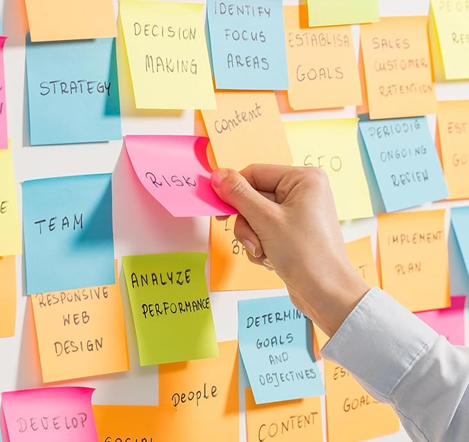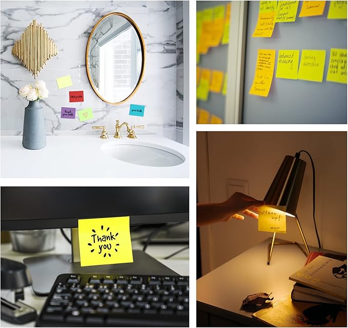 - SUPER STICKY - These sticky notes are super sticky and the adhesive is specially formulated. The super stickiness is twice as strong as normal stickiness, ensuring that sticky notes will not come off and can be removed cleanly.