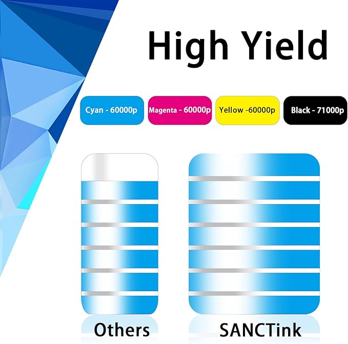 • 4.High Yield: 71000 pages in black, 60000 pages in color. (at 5 percentage coverage of A4 paper)