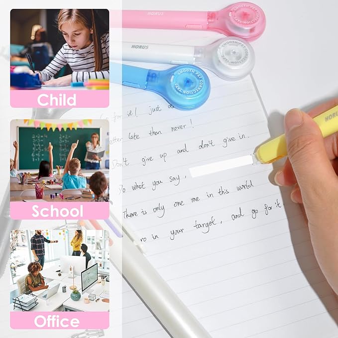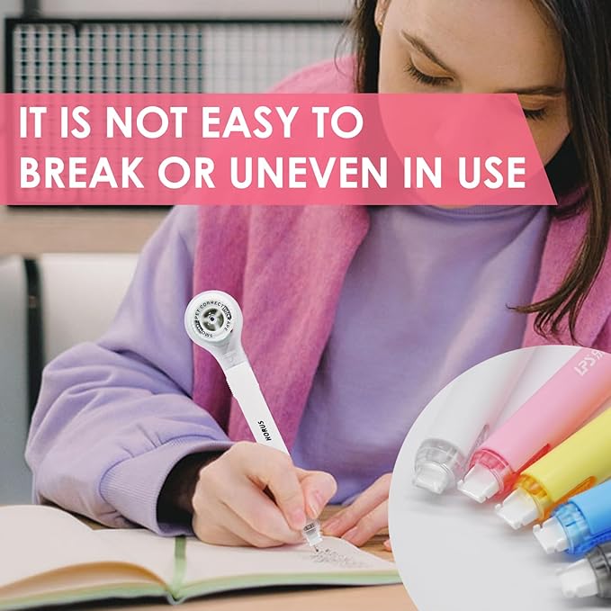 • Ergonomic Pen Design: Designed with a pen-like shape, these correction tapes are easy to grip and use, allowing for quick and precise corrections that save time and effort.