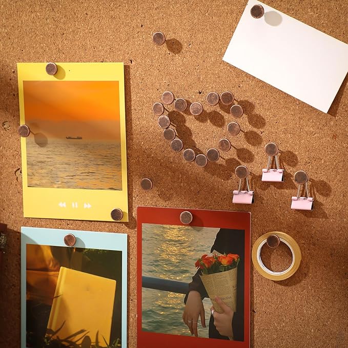 30 Pieces Push Pins, Metal Thumb Tacks for Picture Photo Hanging, Wall Pins for Board Posters Bulletin Maps, Wall Tack for Office Home Decorative(Red Bronze)