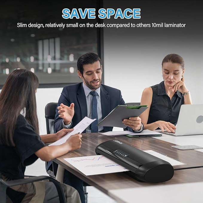 - 4-Roller System for Perfect Results: Equipped with a robust 4-roller system including two heating rollers and two pressing rollers, this thermal laminator offers excellent heat conduction and pressure for consistent lamination results. Avoid the bubbles and fogging effects that occasionally occur in 2-roller laminators. This 10 mil laminator machine is well-suited for office and school environments with heavy lamination needs