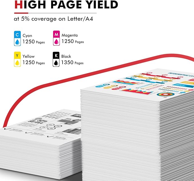 • High page yield: 1,350 (black) and 1,250 (color) based on 5% coverage (letter/a4)
