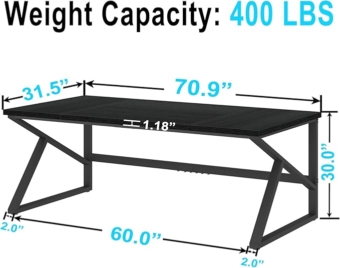 - 【Spacious Work Space & Leg Room】: Measuring 31.5"D x 70.8"W x 29.5"H overall, this long black desk offers ample space to accommodate multiple monitors, pc, laptop, printers, files, books, lamps and any other office essentials, ensuring you have everything you need within arm's reach for enhanced productivity. The desktop is crafted from three meticulously joined panels, creating a cool cross-grain effect. Featuring two K-shaped metal legs with an open structure, this large computer desk for home office provides ample leg room, promoting comfort during extended periods of use.
