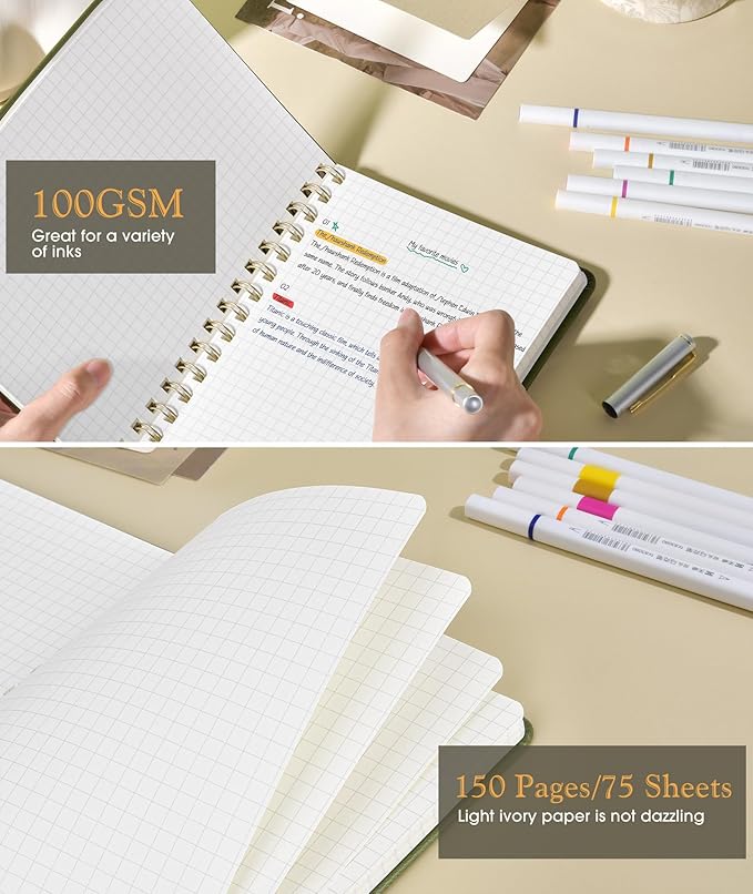 - 【A5 Journal with 100 GSM High-Quality Paper】 Crafted from 100 GSM thick ink-friendly paper, our notebook prevents ink bleed-through and ghosting. It accommodates various pens, including ballpoint, gel, and fountain pens. A5 size 5.75" x 8.38", perfect size for carrying around or put into your bag or purse.