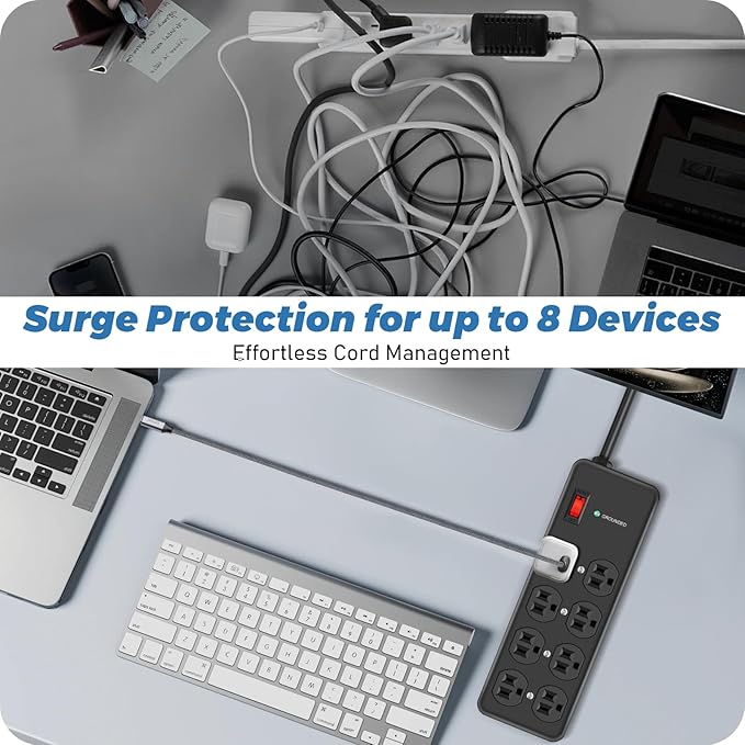 - Multi-Outlet Power Board:8 AC outlets with 1.6 inches of space between them are easy to use for a variety of devices to meet more power needs in your daily work. No need to worry about crowded location, rational use of outlet space, suitable for home, office, store, game room and so on.