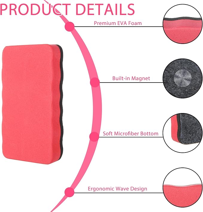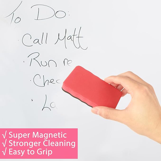 - STRONG MAGNETIC DRY ERASERS: These magnetic whiteboard erasers have built-in strong suction magnets, which can easily stick to any metal surface such as whiteboards or blackboards, and are within reach when needed