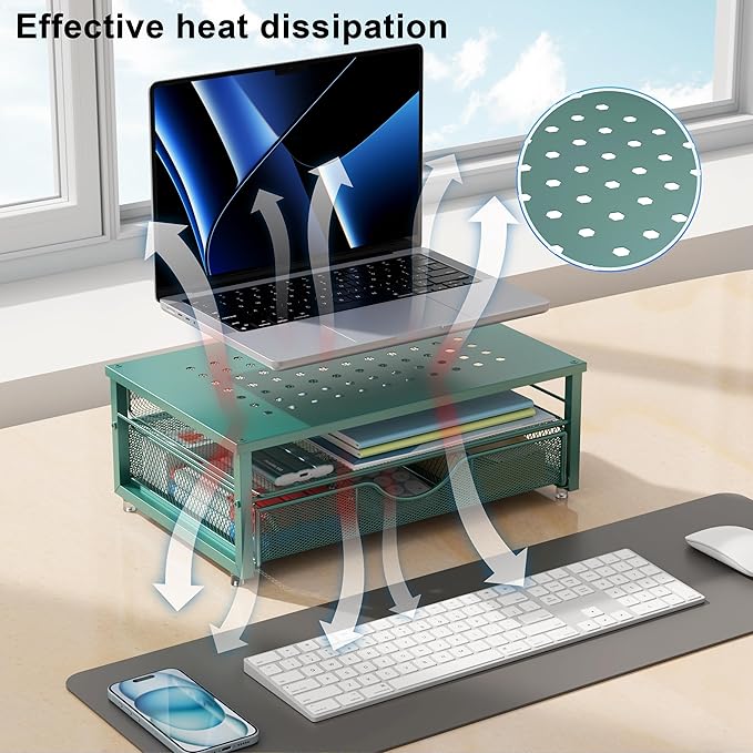 gianotter Computer Monitor Stand Riser, office organizer with Drawer, Office Organizers Storage for Classroom Office Supplies (Dark Green)