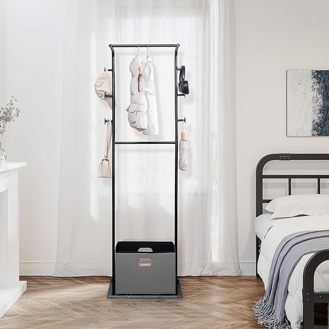 - Versatile Design: Stylishly designed to complement various spaces, our coat rack stand seamlessly fits into bedrooms, living rooms, hotels, entryways, or foyers. It’s the perfect solution to declutter your space and enhance your organization.