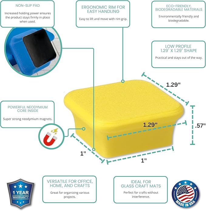Glassboard Studio MiniBar Magnet - Strong Neodymium Rare Earth Magnets for Fridge, Whiteboard, Locker & Magnetic Glassboards - Crafting & Office Use - Strong Fridge Magnets (Sunshine Yellow, 2)