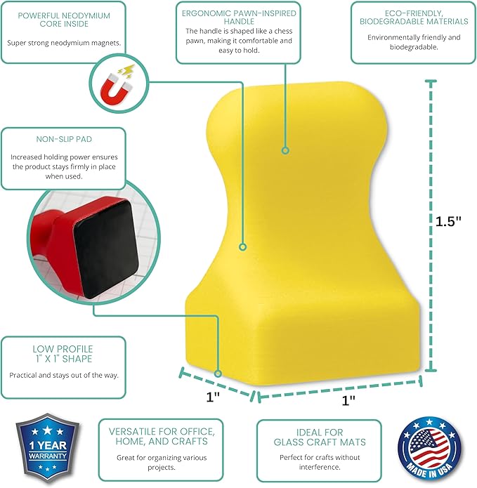 Glassboard Studio MiniPawn Magnet - Strong Neodymium Rare Earth Magnets for Fridge, Whiteboard, Locker & Magnetic Glassboards - Crafting & Office Use - Strong Fridge Magnets (Sunshine Yellow, 2)