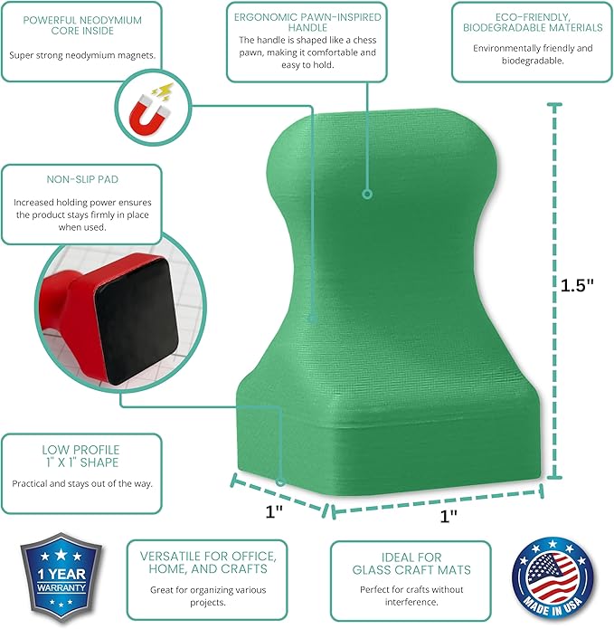 Glassboard Studio MiniPawn Magnet - Strong Neodymium Rare Earth Magnets for Fridge, Whiteboard, Locker & Magnetic Glassboards -Crafting & Office Use - Strong Fridge Magnets (Spring Green, 2)