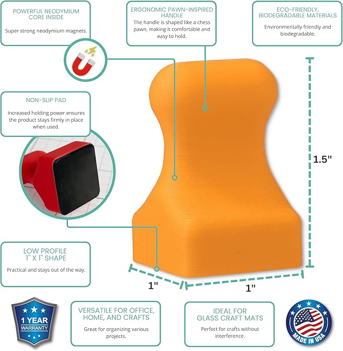 Glassboard Studio MiniPawn Magnet - Strong Neodymium Rare Earth Magnets for Fridge, Whiteboard, Locker & Magnetic Glassboards - Crafting & Office Use - Strong Fridge Magnets (Tangerine Orange, 2)