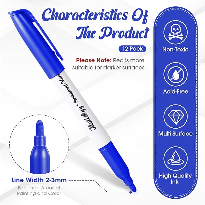 - Product Includes: The package contains 12 pieces of multicolor metallic permanent markers, which are perfect for adding brilliance and decoration to various crafts; Please note: the caps need to be covered when not in use to prevent the ink from drying