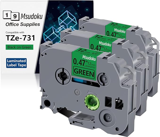 - Package included: 3-Pack Compatible with Brother PTouch TZe-731 TZ-731 TZe731 TZ731 12mm 0.47 Inch Black on Green Label Maker tape