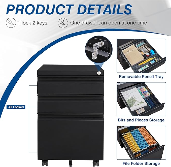 - CAN BE PLACED EVERYWHERE - Thanks to the compact design and five flexible wheels of this filing cabinet, you can easily putting it under the desk, next to the sofa, in the bedroom to using as a under desk file cabinet, a bedside tables etc.
