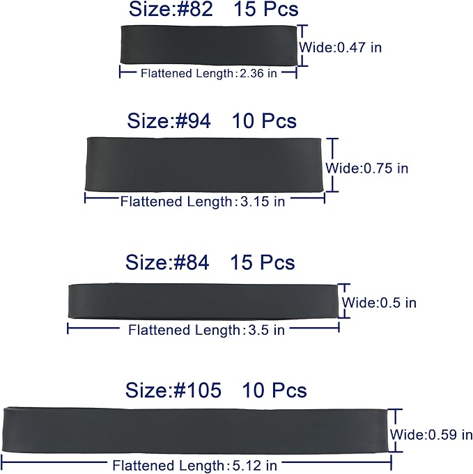 • Size:Assorted Sizes Include size82 (2.5" x 0.5"),size#94 (3.15'' x 0.5''),size#84 (3.5" x 0.5''),size#105 (5.12'' x 0.6'')
