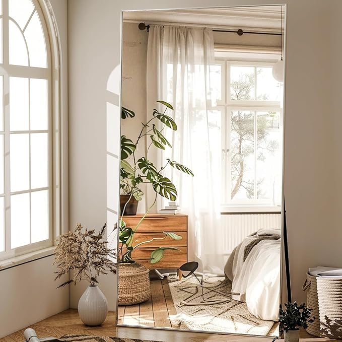 - Full Length - The full length mirror can provide a full body view when leaned against the wall, to give you the perfect viewing angle before you head out the door. The full length floor mirror can be an accent piece for any room. The modern style mirror can match almost any type of room decoration, making your space more open and bright
