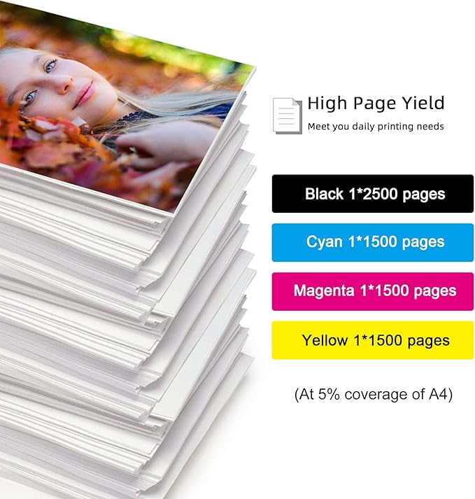 • High Page Yield: Approx. 2600 pages per PGI-2200 XL(Black) / 1600 pages per 2200XL (Cyan) / 1600 pages per 2200XL (Magenta) / 1600 pages per 2200XL (Yellow), at 5% coverage of A4 paper