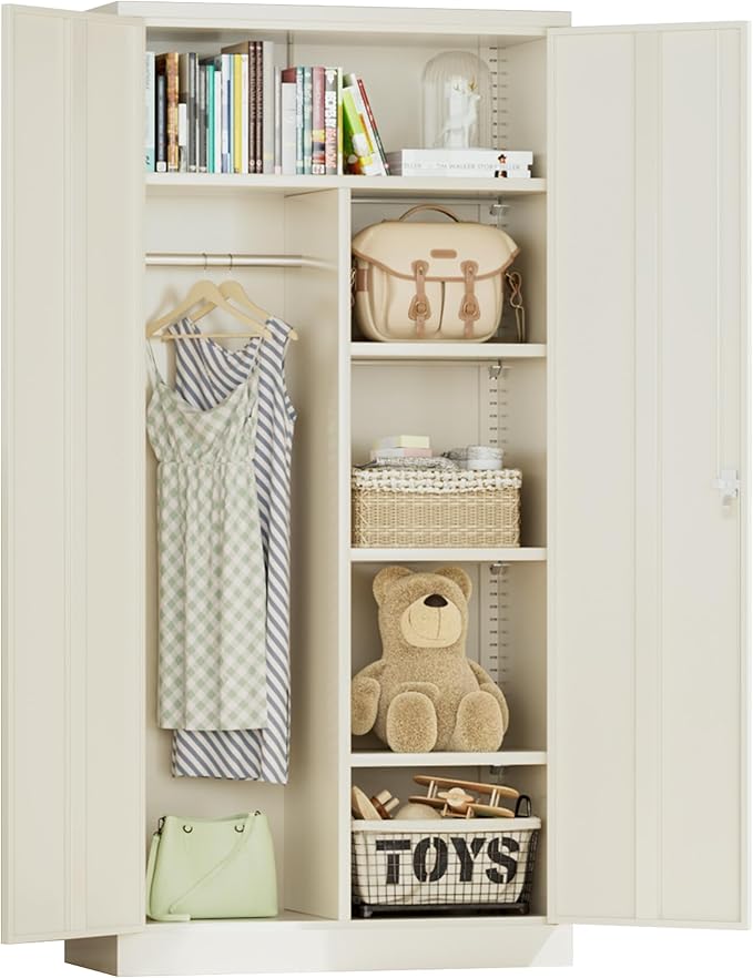 - [ Upgraded Material ]: Greenvelly metal wardrobe is coated with a unique waterproof and anti rust coating on its surface, which not only effectively prevents corrosion and odor, but also easily resists the influence of dust and moisture. This coating design makes daily cleaning more convenient for you, while ensuring that your clothes and items remain dry and tidy for a long time.