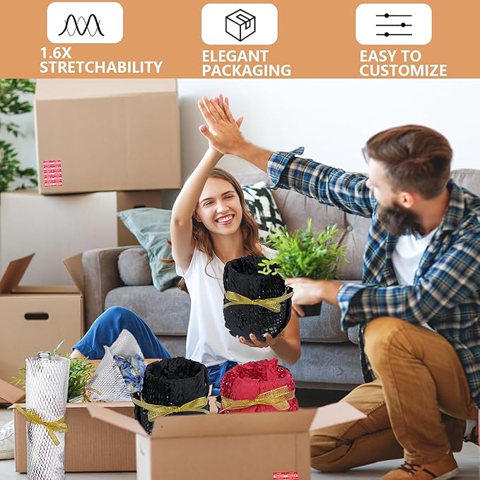 Honeycomb Packing Paper, 12" x 100' Packing Paper Substitute Alternative for Bubble Cushioning Wrap for Moving Shipping Packaging, Recyclable Moving Supplies Bubble Packing Wrap Roll-Black