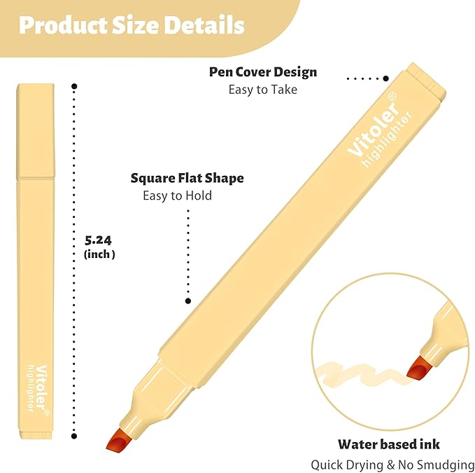 • Easy to Hold: The pastel highlighter is designed with square shape,it’s comfortable and easy to hold, without a sore hand and don't roll around while using.